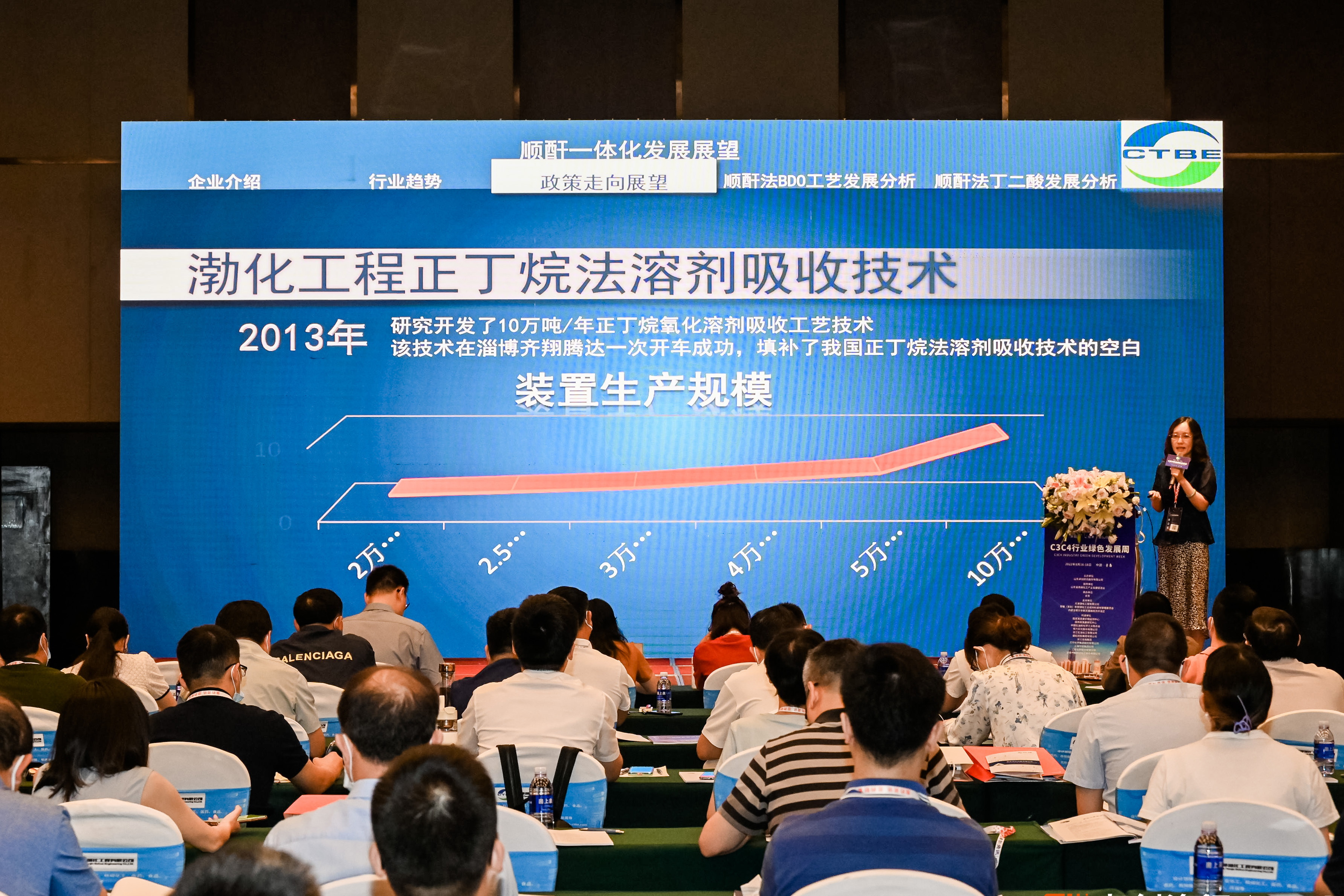 8月17日,總工程師王淑梅以《順酐一體化發(fā)展展望》為題,在順酐-BDO行業(yè)發(fā)展分論壇上發(fā)表了專題演講,簡要介紹公司歷史沿革、技術(shù)實力和相關(guān)業(yè)績,并就順酐行業(yè)發(fā)展趨勢、順酐法BDO工藝發(fā)展分析、順酐法丁二酸發(fā)展分析等方面進(jìn)行了詳細(xì)論述,為參會企業(yè)提供了專業(yè)的技術(shù)支持和參考。
