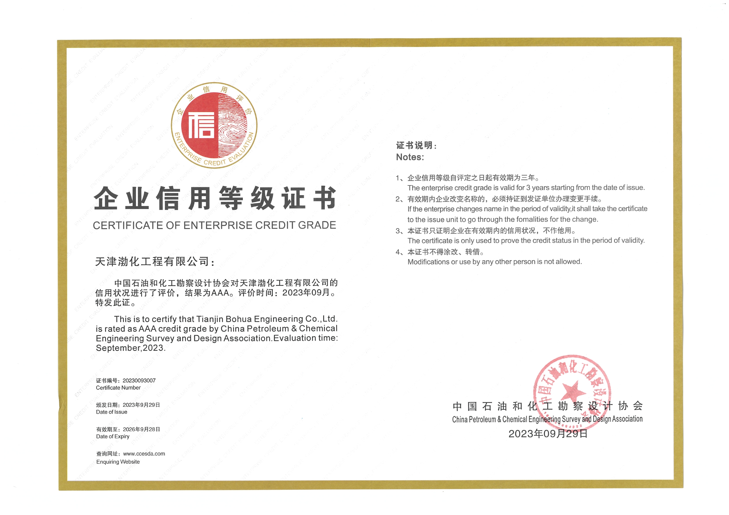 近年來(lái),渤化工程大力推進(jìn)企業(yè)品質(zhì)和誠(chéng)信建設(shè),不斷完善基礎(chǔ)管理系統(tǒng)整體建設(shè)和標(biāo)準(zhǔn)化,為公司高質(zhì)量發(fā)展提供了系統(tǒng)保障。本次信用評(píng)價(jià)是對(duì)渤化工程全面高質(zhì)量發(fā)展取得階段性成果的充分肯定。