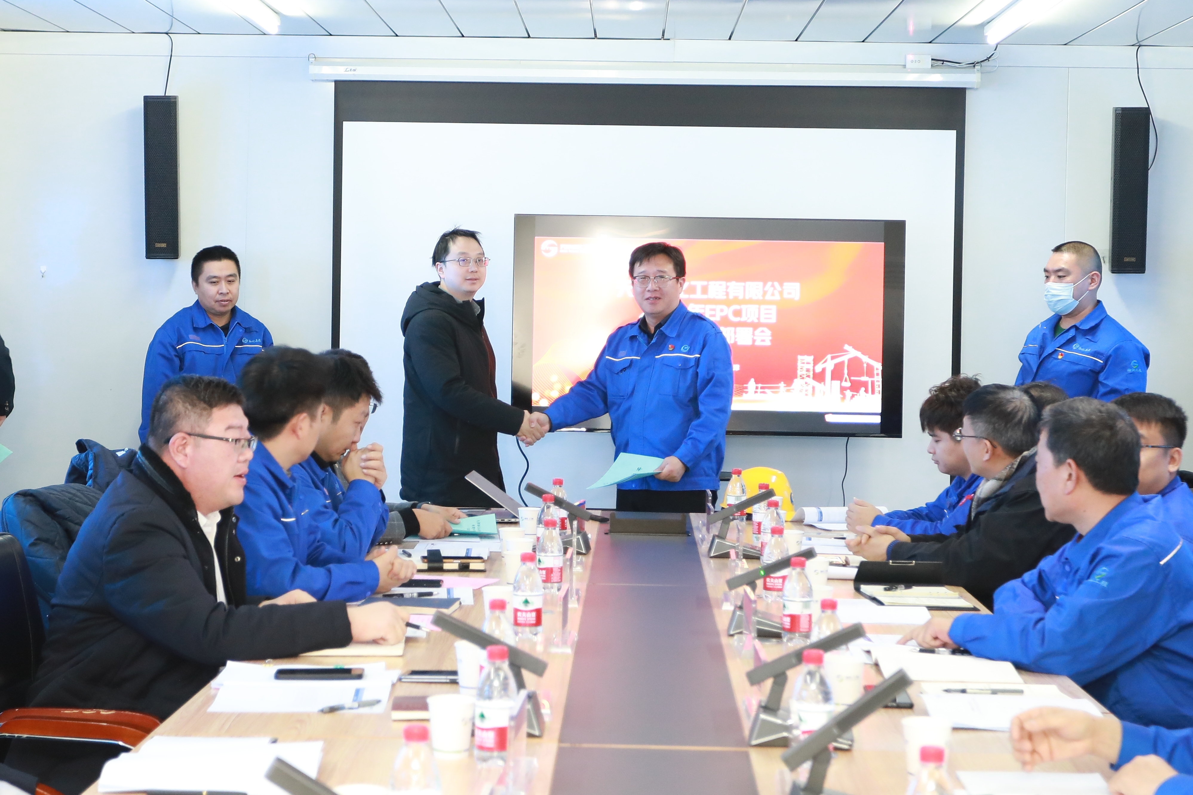 渤化工程燒堿項目項目經(jīng)理高春亮作為EPC總承包單位代表從提高設(shè)計質(zhì)量、加快采購進度、確保施工質(zhì)量與安全三個方面做出了承諾,表示將全力保障項目按時、高質(zhì)量中交。