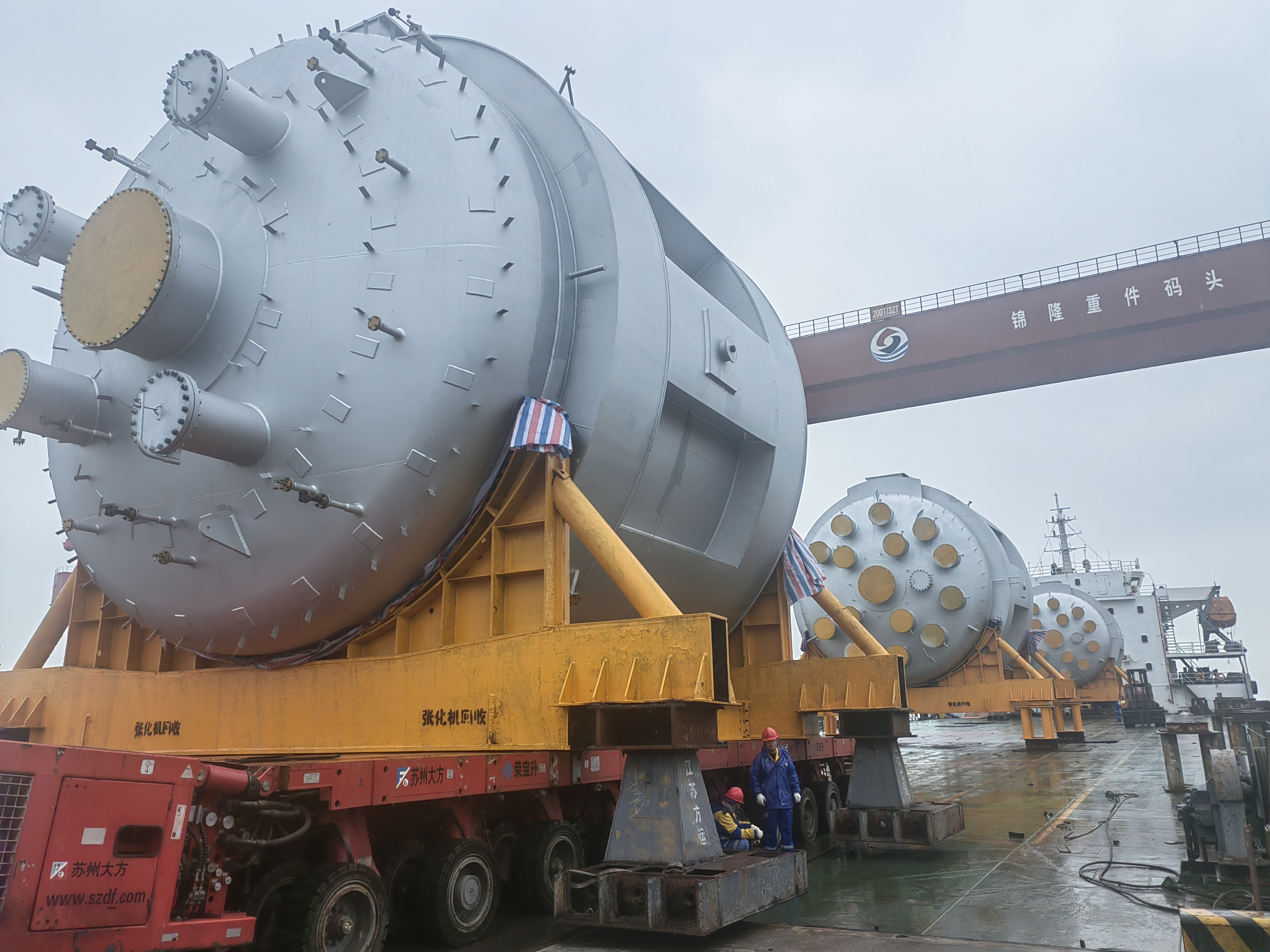 2月21日遠順海2號船靠港,次日3臺順酐反應器順利裝船。24日,反應器支腿及配件裝船,同日獲得海事部門的適航許可、開航起運。