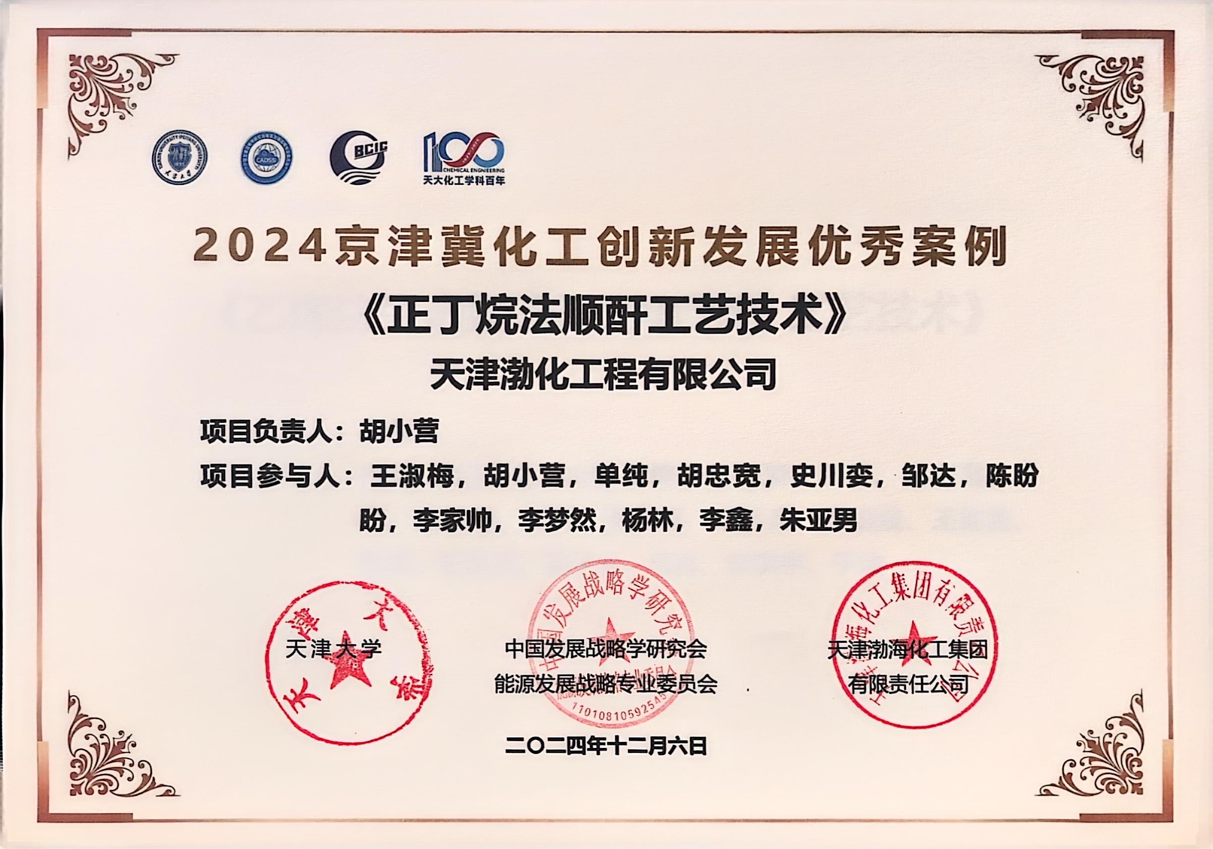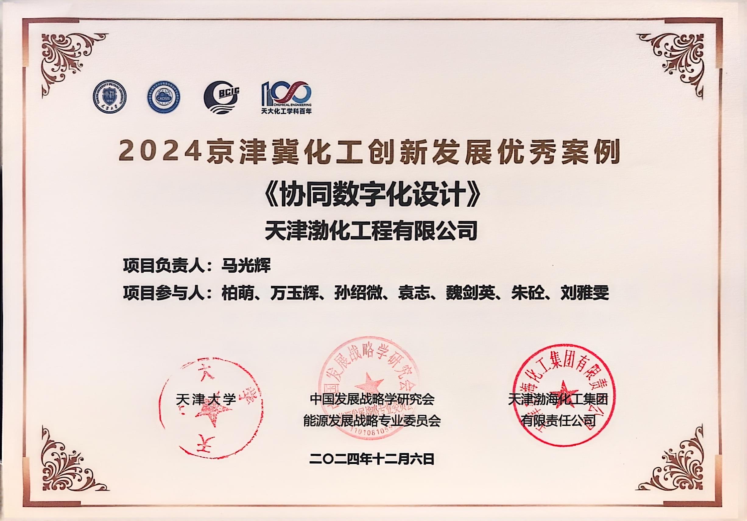 渤化工程五項(xiàng)技術(shù)案例獲“優(yōu)秀案例”殊榮 2024-12-11 10:15:38 在最近圓滿結(jié)束的“2024 京津冀能源化工創(chuàng)新發(fā)展論壇”中,來(lái)自渤化工程的五項(xiàng)技術(shù)案例——“正丁烷法順酐工藝技術(shù)”、“乙烯法生產(chǎn)氯乙烯(VCM)工藝技術(shù)”、“種子乳液法糊樹脂技術(shù)”、“基于微熱管陣列的工業(yè)節(jié)能技術(shù)及應(yīng)用”以及“協(xié)同數(shù)字化設(shè)計(jì)”——榮獲了由天津大學(xué)、中國(guó)發(fā)展戰(zhàn)略學(xué)研究會(huì)能源發(fā)展戰(zhàn)略專業(yè)委員會(huì)、天津渤?;ぜ瘓F(tuán)有限責(zé)任公司共同頒發(fā)的“2024京津冀化工創(chuàng)新發(fā)展優(yōu)秀案例”獎(jiǎng)項(xiàng)。 在此次論壇活動(dòng)中,渤化工程應(yīng)邀展示了“正丁烷法順酐工藝技術(shù)”、“乙烯法生產(chǎn)氯乙烯(VCM)工藝技術(shù)”、“種子乳液法糊樹脂技術(shù)”以及“基于微熱管陣列的工業(yè)節(jié)能技術(shù)及應(yīng)用”四項(xiàng)技術(shù)優(yōu)勢(shì)。此舉不僅向業(yè)界展示了公司的技術(shù)實(shí)力,而且對(duì)于推動(dòng)公司的產(chǎn)學(xué)研合作、技術(shù)交流和技術(shù)推廣發(fā)揮了積極的作用。同時(shí),為公司提升品牌影響力、獲取更多合作機(jī)會(huì)和市場(chǎng)份額提供了有力的支持。 渤化工程主辦的省級(jí)學(xué)術(shù)期刊《天津化工》,承擔(dān)學(xué)術(shù)論文征集和審理工作,為本次論壇活動(dòng)提供了期刊支持,為化工行業(yè)的學(xué)術(shù)交流和知識(shí)傳播發(fā)揮了良好的橋梁和紐帶作用。