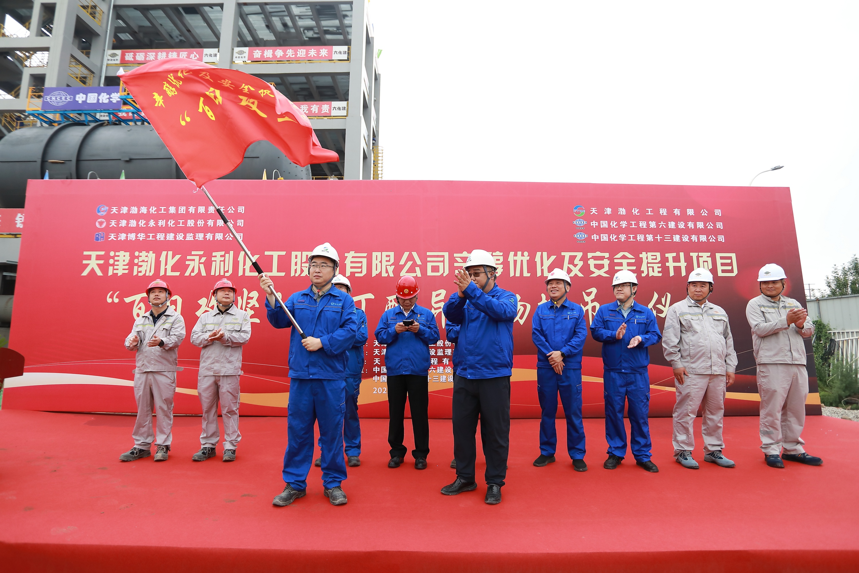 7月8日上午,天津渤化永利化工股份有限公司舉行辛醇優(yōu)化及安全提升項目“百日攻堅”暨丁醛異構(gòu)物塔吊裝儀式。渤化集團(tuán)副總經(jīng)理張曄輝及集團(tuán)相關(guān)單位負(fù)責(zé)人;渤化永利黨委書記、董事長魏以峰,黨委副書記、總經(jīng)理王凱;渤化工程黨委書記、董事長詹宏智,黨委副書記、總經(jīng)理莫冠群;中化六建、中化十三建、博華監(jiān)理等參建單位負(fù)責(zé)人參會并作表態(tài)發(fā)言。