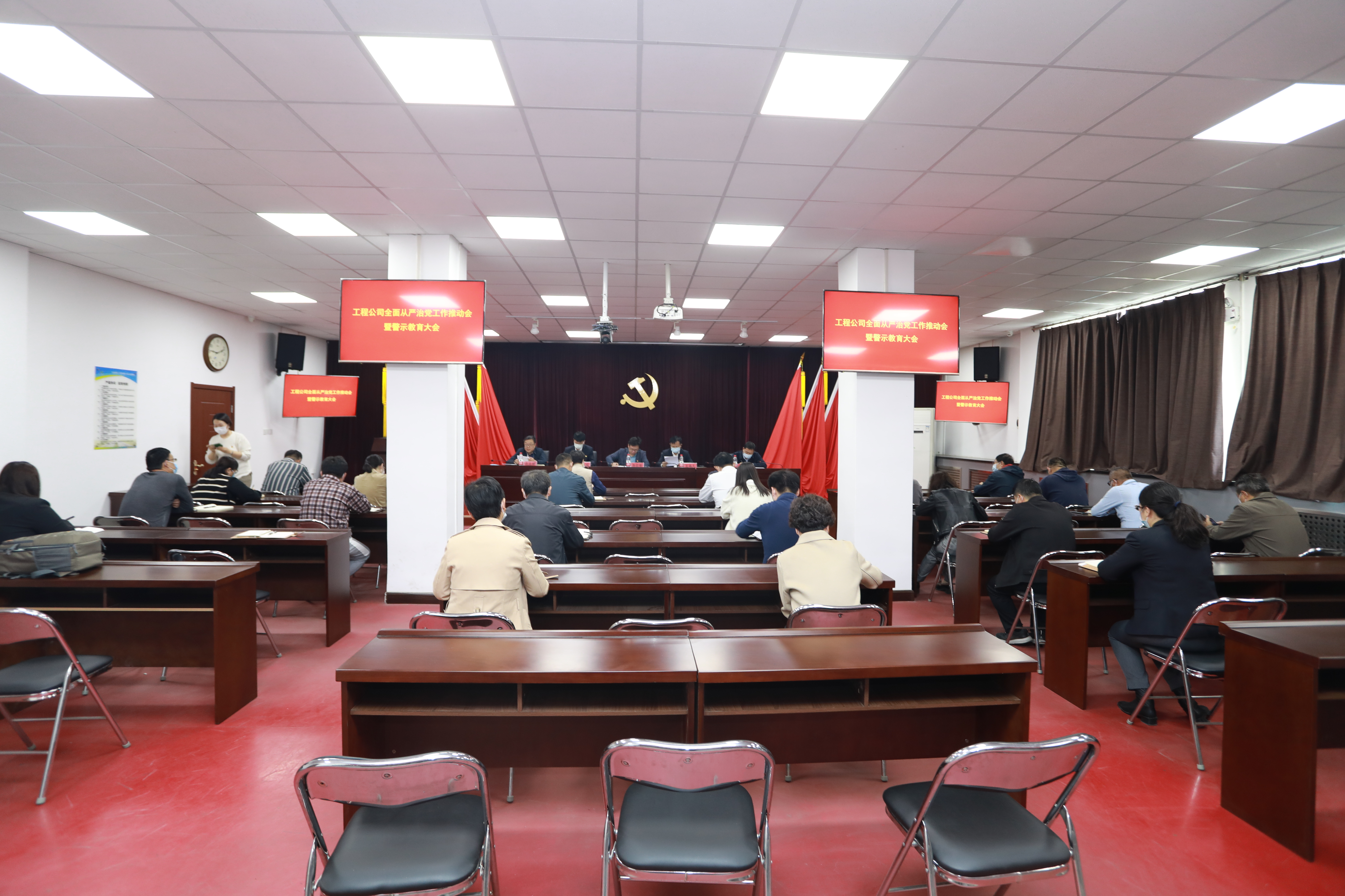 為深入貫徹落實(shí)習(xí)近平新時(shí)代中國特色社會(huì)主義思想和關(guān)于全面從嚴(yán)治黨的重要講話精神,督促工程公司基層黨組織認(rèn)真落實(shí)主體責(zé)任,堅(jiān)定不移推動(dòng)全面從嚴(yán)治黨工作向縱深發(fā)展,10月12日,渤化工程組織召開了全面從嚴(yán)治黨工作推動(dòng)會(huì)暨警示教育大會(huì),會(huì)議由黨委副書記、工會(huì)主席、總法律顧問衣品卿主持,公司領(lǐng)導(dǎo)班子成員,各黨支部書記,以及中層領(lǐng)導(dǎo)干部參加會(huì)議。