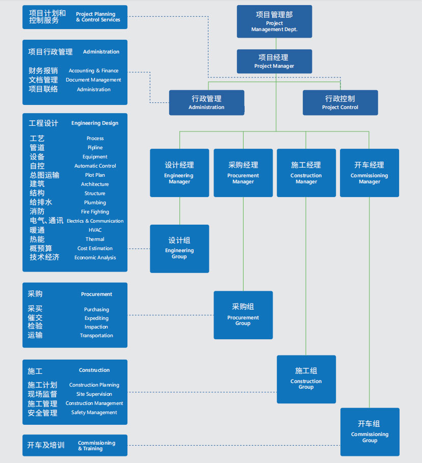 工程總承包是天津渤化工程公司的戰(zhàn)略業(yè)務(wù)核心單元。我公司是以設(shè)計(jì)為主體的工程總承包單位,具備從科研開(kāi)發(fā)、咨詢、設(shè)計(jì)、采購(gòu)、制造、施工等完整的項(xiàng)目業(yè)務(wù)鏈。